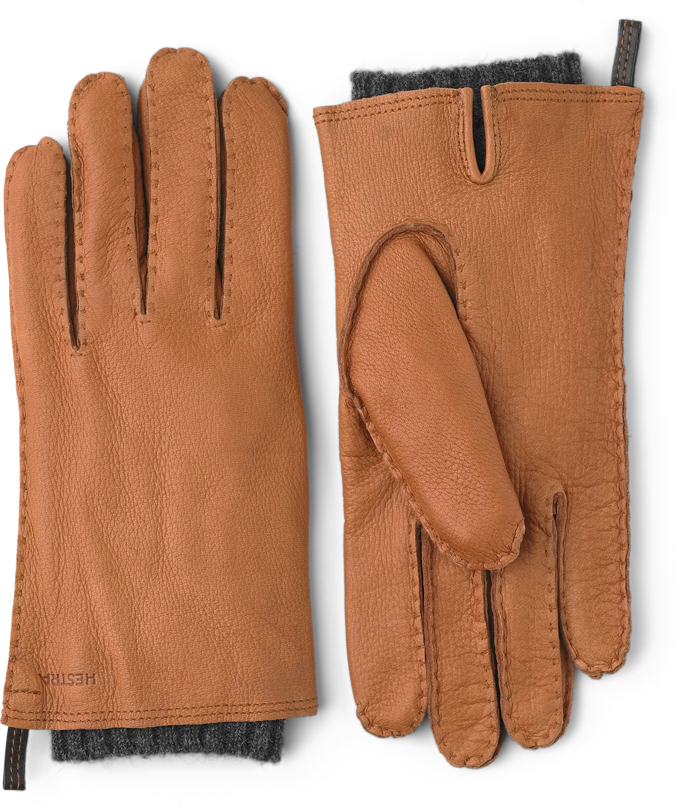 A handsewn deerskin glove featuring stylish, minimalist Scandinavian design. A smart men’s glove with a wool lining and ribbed knitted cuff that makes an attractive contrast to the rustic texture of the leather. Light and warming for chilly autumn and winter days.